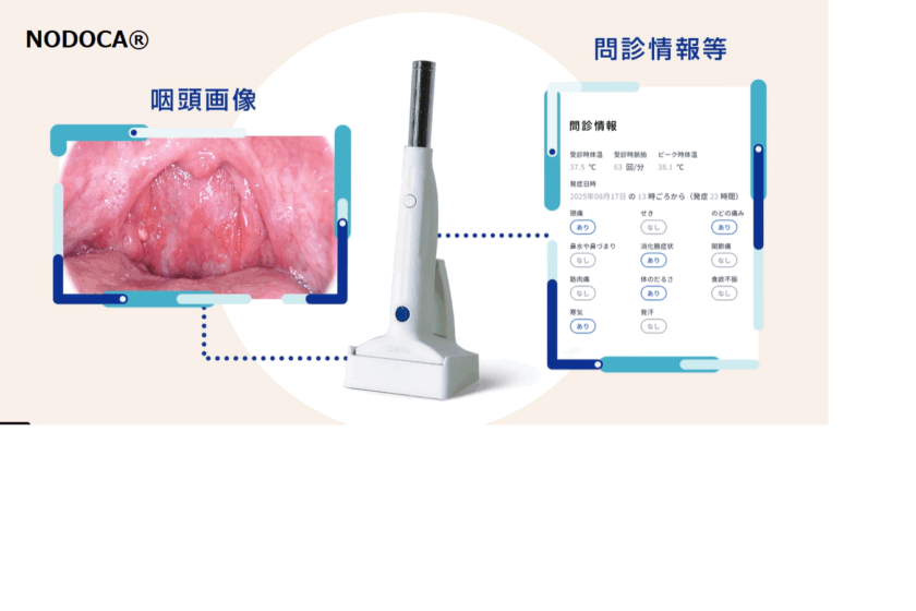 AI診断:NODOCA®は咽頭の写真や臨床症状からインフルエンザ感染を確認するもので鼻に綿棒を突っ込まないため、痛みを伴わず6歳以上の小児に最適です。また、発熱後すぐでも陽性判定率が高いためしんどいのを我慢する必要がありません。